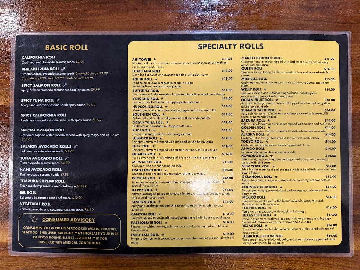 Tempura shrimp and crab meat topped with salmon, tuna, shrimp and avocados served with spicy mayo and sushi sauce.
