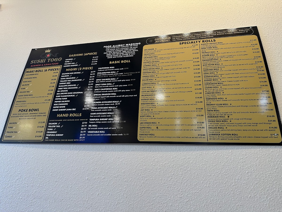 Soybean pockets, sushi rice, kani salad, tigers shrimp avocado, sushi sauce, spicy mayo, sesame seeds.